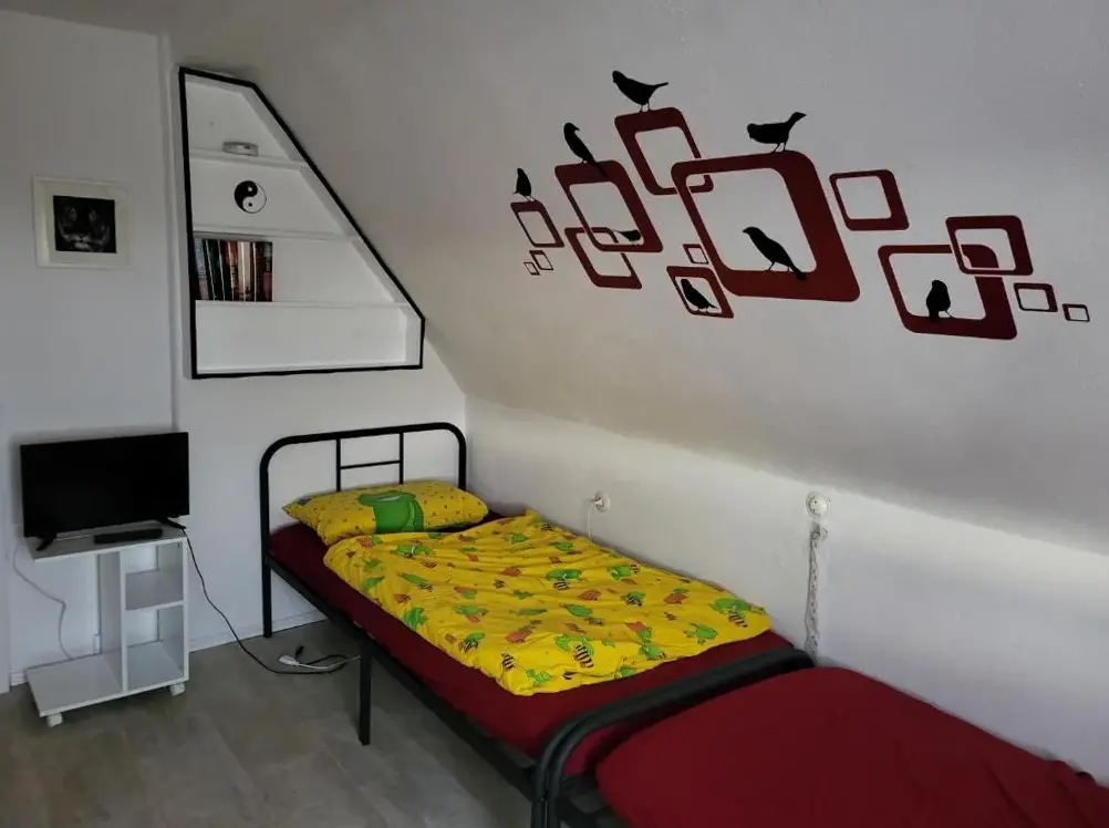 그러나 8 명에게는 집이 다소 비좁아지고 불행히도 거실이나 부엌에서 함께 맞지 않습니다. 또한 화장실과 샤워 실이 단 하나 뿐이며 8 명에게는 불리합니다.